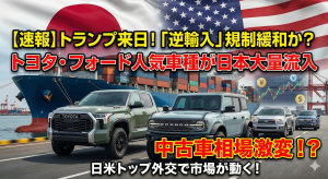 【速報】トランプ来日で「逆輸入」規制緩和か?トヨタ・フォード人気車種が日本市場に大量流入で中古車相場はどうなる?